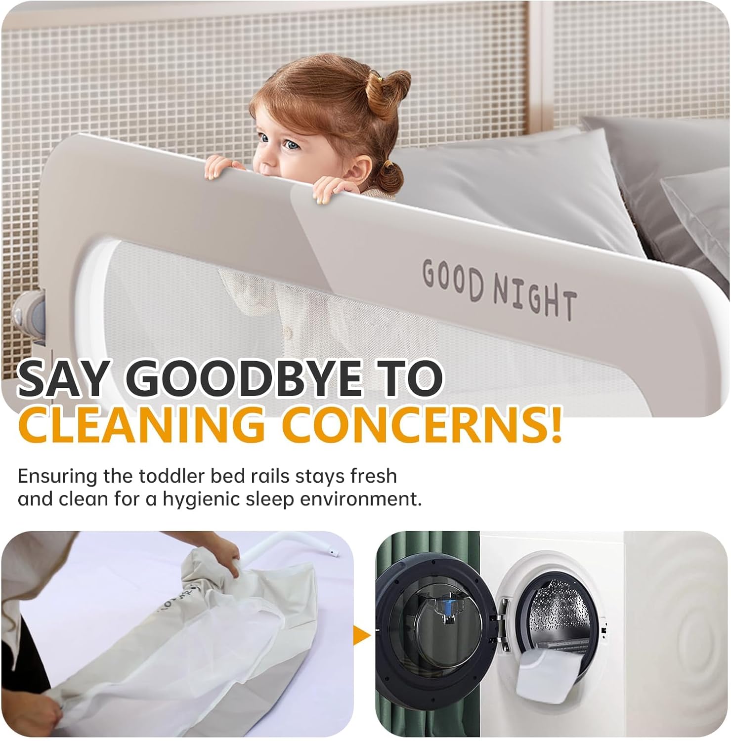🔄 Smart Foldable Design One-click button allows effortless folding and swinging. Adjustable height fits different mattress thicknesses for convenient co-sleeping.